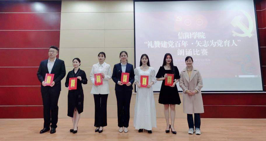 4月20日晚,由校党委宣传部主办,广播电台承办的“礼赞建党百年,矢志为党育”人”主题朗诵比赛在信阳学院图书馆102举行。校党委宣传部部长李肖利和白杨、何勇、杨正玉参加了本次活动。李肖利、白杨、杨正玉担任了比赛评委。