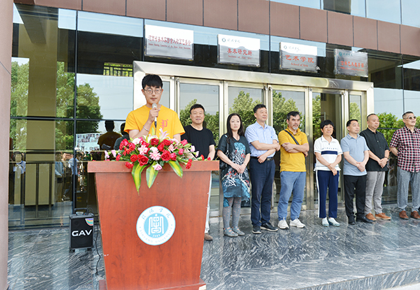 王红卫作为专家代表讲话。他称赞信阳是个好地方,“信”代表信念、诚信、信用,“阳”代表阳光,就像信阳学院的同学们一样充满朝气、阳光向上。希望同学们在这个美好的城市享受学习的快乐,追求艺术的真谛。