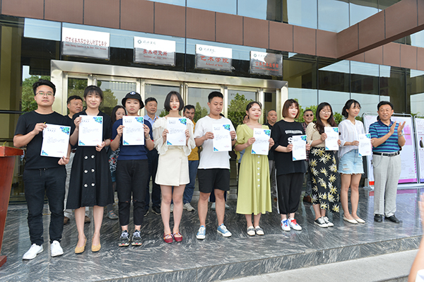 开幕式结束后,校领导与嘉宾、获奖学生合影留念,并一同参观了毕业作品展。