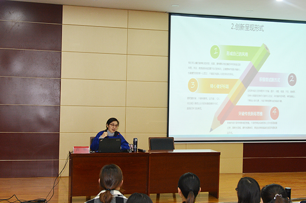 高杨生动详实地跟师生们分享了新媒体运营的实战经验,并结合大量案例分析了运营公众号的技巧,即要做好选题规划、创新呈现形式和提升服务体验,指出新媒体常态下校园媒体要讲好校园好故事、传播教育好声音。她深入解读了人民日报新媒体平台和抖音的运营策略,就如何提高新媒体运营者的政治素质、策划能力、文字能力、学习能力和采写能力提出了宝贵建议,并用马云的名言“不要等到明天,明天太遥远,今天就行动”勉励大家要抓住机会、勇于实践。