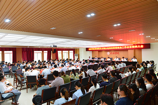 6月21日下午,我校贯彻落实全国全省高校思想政治工作会议精神大会暨机构调整、岗位设置及干部竞聘工作大会在行政楼208会议室相继召开。理事长高云、名誉校长王北生、专职书记施昌海、常务副校长傅洪涛、副校长王志华、副校长毛海涛、校长助理杨高伟出席上述两个会议。各学院院长、各职能部门负责人、各单位干事以上管理干部、教研室主任、全体辅导员及有关人员参加了会议。施昌海主持了会议。