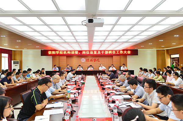 在机构调整、岗位设置及干部竞聘工作大会上,傅洪涛安排部署了学校机构调整、岗位设置及干部竞聘工作,对开展本次工作的背景、意义、实施方案进行了详细说明。并在会上宣读了《信阳学院关于加强学术团队建设的实施意见》,就启动此次工作进行了具体安排。