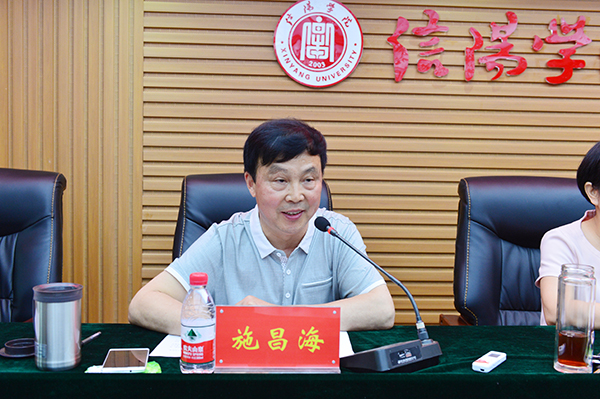 在贯彻落实全国全省高校思想政治工作会议精神大会上,施昌海安排部署了《信阳学院关于加强和改进新形势下思想政治工作的实施意见》。