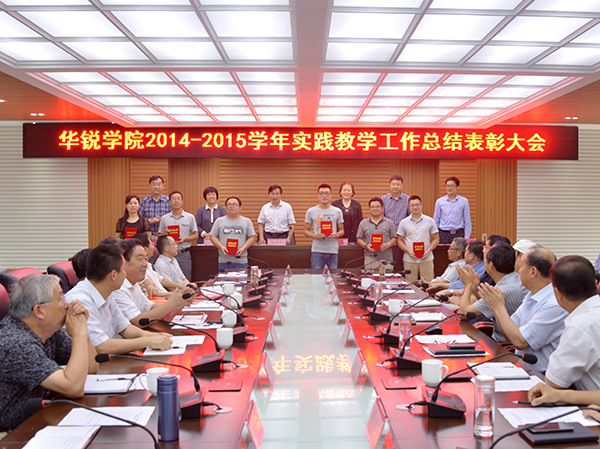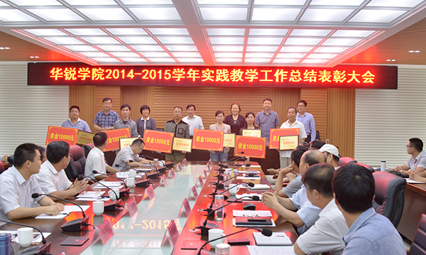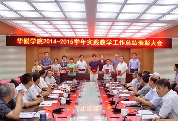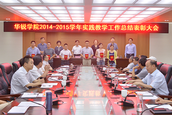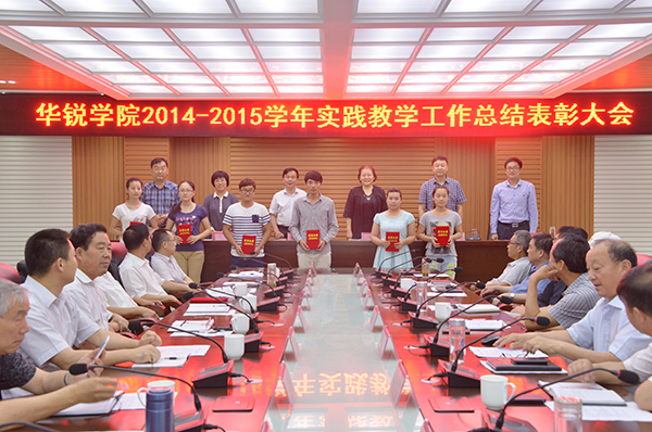 在实践教学总结表彰大会上,王志华宣读了《关于表彰2014-2015学年实践教学工作先进单位和先进个人的决定》。实践教学中心张忠锁对本学年学院实践教学工作进行了总结,社会科学系主任陈录生、理工系主任魏明坤、外语系主任罗德喜分别就本单位实践教学工作开展情况作了典型发言。