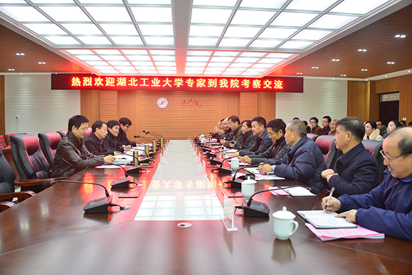 高峰作了重要讲话。他指出,在学院发展的重要时期,湖北工大各位专家来校指导,为促进学院更好更快发展提供了新契机。面对有关专业建设发展遇到的新课题,学院正围绕应用型人才培养需要和学生多元化发展需求,坚持公益性办学,运用体制灵活、决策迅速等优势,着力加强内涵建设,提升培养质量。当前,在上级领导和地方政府的关心支持下,学院迎来了新的发展机遇。学院将会从经费配套、专业设计等方面支持学院广大青年教师从事科研,进行专题项目研究。希望专家们对学院的人才培养、专业建设和校园建设等方面给予指导,双方携手为大别山革命老区建设贡献力量。