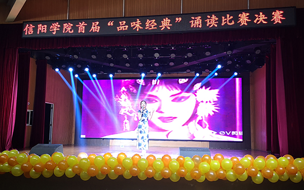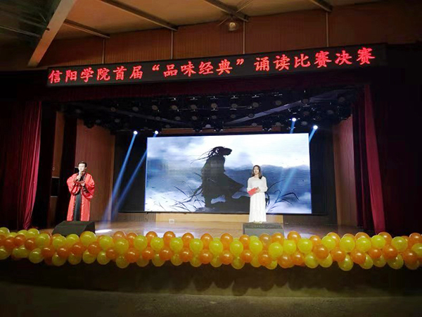12月10日晚,由学校党委宣传部、学生处、教务处、校团委和文学院共同主办的信阳学院首届“品味经典”诵读比赛决赛在大学生活动中心举办。集团董事长高峰、副校长王志华出席比赛活动。党委宣传部部长李肖利、团委书记郑山峰、学生处干事宋川川、文学院广播电视学教师刘艺等担任评委。文学院院长毛正天、党总支书记张甲楠和600余名师生观看了比赛。