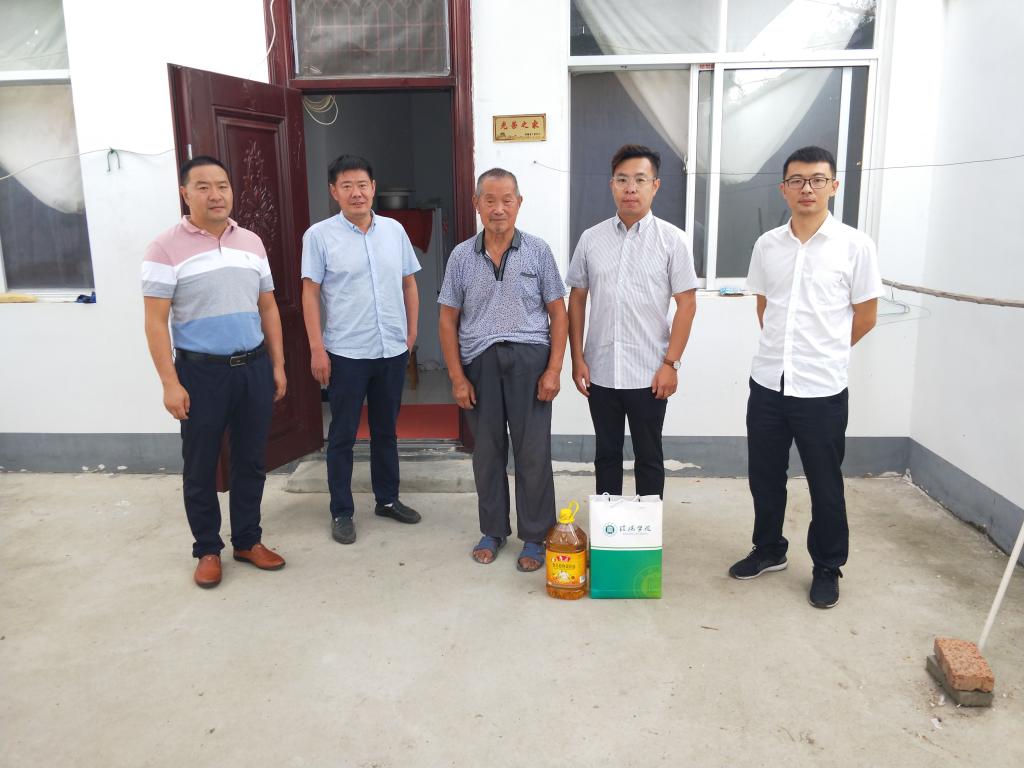 “要过节了,我受信阳学院校领导的嘱托,代表学校师生来看望您”。周扬同志来到贫困户家中,和群众唠家常、详细询问生活情况,并将学校精心制作的月饼、食用油等节日礼品送到他们手中。香溢扑鼻的月饼充满了学校的温情,饱含着校领导心系贫困群众的大爱之情。本次关爱行动还特别慰问了一位抗美援朝老兵,一行人和老兵亲切合影,送上关爱和问候。
