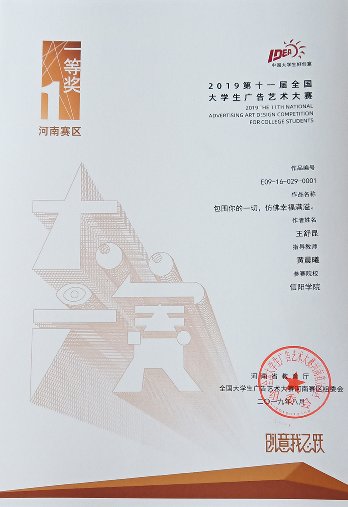 近日,第十一届全国大学生广告艺术大赛河南赛区结果出炉,我校美术与设计学院师生作品获得一等奖1项,二等奖1项,三等奖2项,优秀奖15项,优秀指导教师6项。