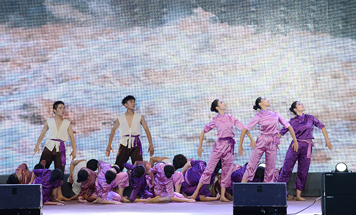 晚上七点半,伴随着“拥抱着梦歌唱,希望在前方”优美的旋律,热情欢快的开场歌舞《青春畅想》拉开了晚会的序幕,生动诠释了青年学子把青春梦想与“中国梦”融合起来的远大志向;“星星跟着月亮走,葵花跟着太阳走,我们跟着新时代,幸福美好一起走”,《幸福中国一起走》以高昂的曲调歌唱出“今天连着未来,梦想连着强盛”的美好愿景;“我在这里生活也在这里成长,为了学业努力拼搏实现自我理想,教我如何起跑,如何面对社会,用知识武装自己,提前做好准备......”原创歌曲《MY HOME 信院》用当下流行的电子音乐和节奏感十足的RAP说唱,自作词、自作曲表达出学校“以生为本”“关爱学生成长”的理念和对大一新生的祝福与关怀;别具特色的《讲信院故事——我们都是追梦人》,讲述了学校那些不忘初心和使命,在奋斗中释放青春激情、追逐青春理想的优秀校友的故事;一袭青色衣衫,出水芙蓉的姑娘在娉娉袅袅的舞姿里伴随着晚风,轻盈优美的勾勒出一幅精彩纷呈的荷塘美景,舞蹈《莲颂》通过舞姿展现了莲花的高贵品格与魅力;气势雄浑的红歌《长江之歌》和《乘胜进军》将晚会推上高潮,以慷慨激昂、铿锵有力的合唱铭记那段激情燃烧的峥嵘岁月;街舞《COME BABY COME ON》紧跟其后,铿锵的鼓点,整齐的动作,活力的舞姿释放出青年学子的火热与激情;“信院网红”李兆阳一曲《追梦赤子心》,“点燃”了台下观众的“点点星光”,观众纷纷用手机照明当作荧光灯,台上台下遥相呼应,热烈互动;舞蹈《纸扇书生》,翩翩汉服、袅袅身姿,以纸扇为媒,以舞姿为载,为仲夏之夜增添一抹别致风味;经典老歌《在希望的田野上》《春天的故事》《年轻的朋友来相会》与潮流新歌《赞赞新时代》交织在一起,传唱出新时代的发展故事和时代印记;舞蹈《黄河》气势恢宏、大气磅礴,台上演员激情演绎,台下观众翘首观看,与演员们一起感受着中华民族不屈不挠的民族风骨;朗诵《青春中国》,以新时代新青年的热情与情怀,歌颂祖国发展的辉煌篇章。