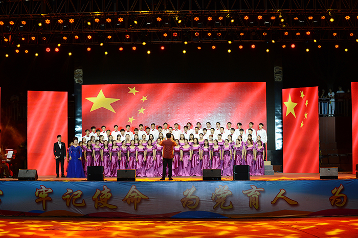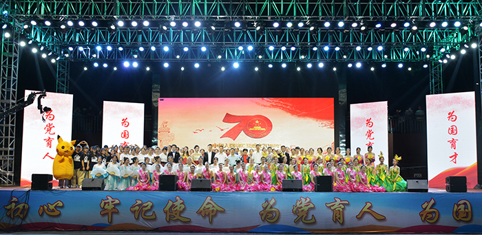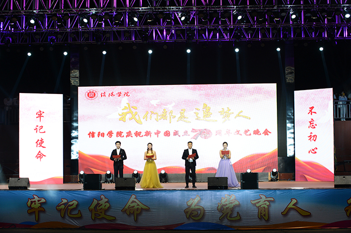 最后,歌伴舞《不忘初心》与大屏幕上“不忘初心、牢记使命”“为国育才、为党育人”等标语相得益彰,展示着信院人创办一流民办高校、增辉信阳、添彩中原的坚定信心和继往开来、逐梦前行的勇气担当。