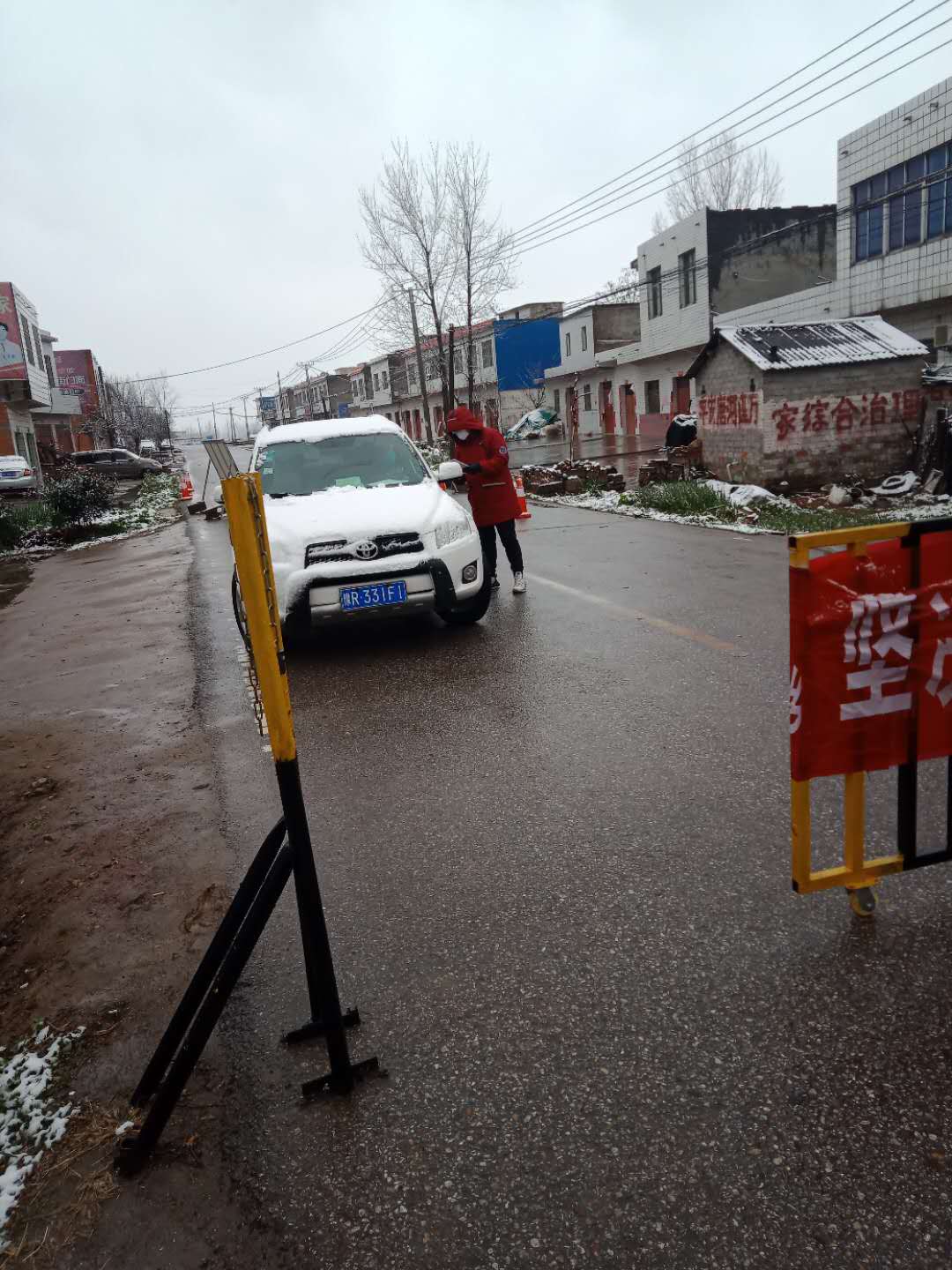在这里我主要负责的是对来往人员和来往车辆进行劝返和登记,把告示牌和红条幅指给那些想要走出去和走进来的人们,“现在可是咱们在家里躺着不动就能为国家做贡献的时候了呀”,“咱现在不出门,以后想去哪儿就能去哪儿,不然可得好久都不能安心出门溜达呢”,“这会儿不让出去也是希望咱们都安全健康不是”;对于那些不得不出去的人们,我就要测量他们体温,登记进出时间和去向,尽力确保每一个人的行踪和安全。