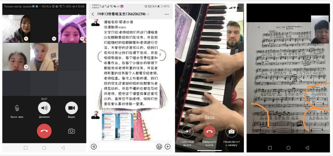 来自白俄罗斯的奥克萨娜老师和奥列格老师,分别承担我校音乐学院的部分声乐和钢琴教学。因为疫情的突发,两位老师目前还滞留在自己的祖国,他们积极响应“延期不延教”号召,克服课程的高强度实操要求,通过微信群、视频直播等形式在线与学生交流、弹唱,效果较佳。
