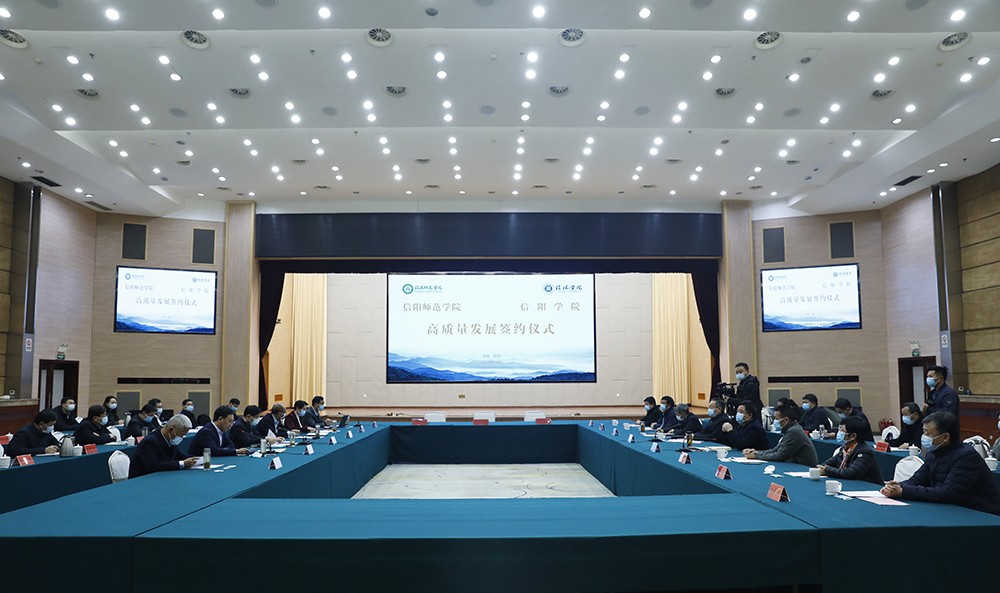 陈志伟总结讲话。他指出,大学是城市的名片,城市是大学的载体。长期以来,两所大学扎根信阳,相互依托、相互支持,结下了血浓于水的特殊情谊。两校办学特色鲜明,为信阳教育事业的发展作出了重要贡献。两校的建设,是信阳高等教育事业整篇格局中的重要部分,也是非常具有发展活力的部分。当前,两校呈现出强劲的发展态势,站在了更好的发展阶段,信阳市委、市政府坚定不移支持高等教育的发展,将一以贯之把支持两校的建设作为重要任务,以最大诚意、最优服务、最好保障,抓好落实承诺的事项,加快推进两校提质扩容,丰富内涵,促进两校高质量发展。同时期待两校进一步做大规模、做强实力、做响品牌,为信阳打造“两个更好”示范区、美好生活目的地贡献更大力量。