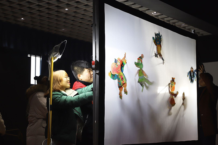 (信阳学院学生社团“俏皮影社”表演皮影卡通剧《小猫米罗》)