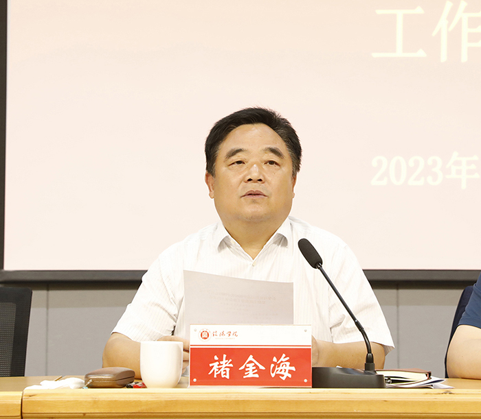 褚金海发表讲话,传达了中央、省委和省委教育工委学习贯彻习近平新时代中国特色社会主义思想主题教育会议精神,对学校开展好主题教育提出三点意见。