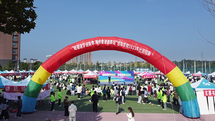 10月14——15日,备受集团董事会、学校理事会和党委、行政及全校师生共同关注的2023年学校社团招新活动在西操场举行。集团董事长高峰、学校党委专职副书记施昌海、副校长王志华等校领导和信阳市文广旅局王清丰,罗山皮影传承人陈雨伦、祁平等来宾,深入现场指导社团招新工作。宣传部、学工部、校团委、后勤保卫处等部门负责人,各学院党总支书记、学工秘书、团总支书记和部分社团指导教师共同参与指导了此次招新活动。各社团负责人、志愿者和2023级新生参与了社团招新活动。