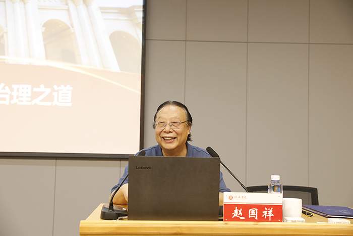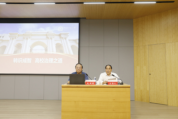11月2日,中国心理学会理事长、河南师范大学原党委书记、博士生导师赵国祥教授应我校邀请,在图书馆101学术报告厅作了题为“转识成智——高校治理之道”的学术报告。校长王北生,战略发展咨询委员会主任熊健民,专职副书记施昌海,副校长王志华出席报告会。全体中层干部和教研室主任聆听了报告。王北生主持了报告会。