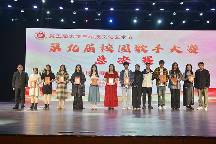经过激烈角逐,音乐学院宋佳乐同学凭借自己优雅的台风和动听的歌喉获得冠军,外国语学院靳子怡和杜雨恒同学分别获得亚军和季军。教育学院周巾翔,数学与统计学院邢钗钗,音乐学院陶思宜、赵冰冰,外国语学院万若兰,教育学院杨欣雨,理工学院赵晨晨荣获“十佳歌手”荣誉称号;音乐学院柴欣欣、王香香,商学院李梦真、仲丛天,理工学院莫翔等荣获“优秀歌手”荣誉称号。