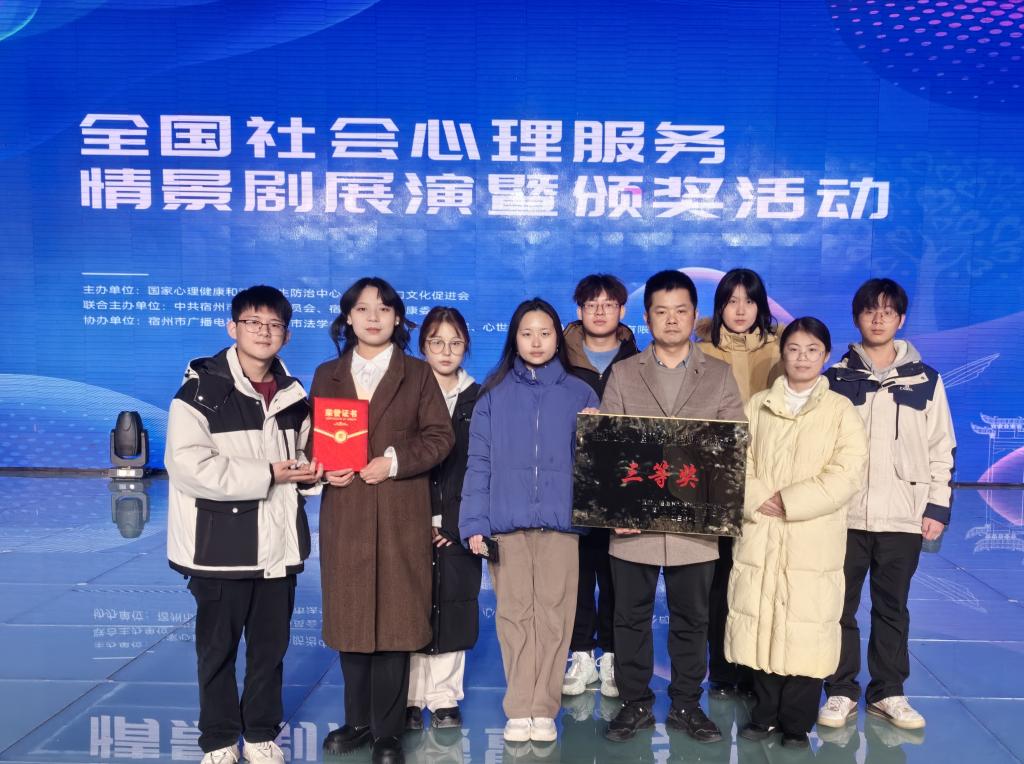 12月30日,由国家心理健康和精神卫生防治中心、中国人口文化促进会联合主办的全国社会心理服务情景剧展演活动在安徽省宿州市举行。此次活动共有来自全国22个省55个地区的143部作品参赛,经专业评审专家组初筛,共有50个作品被评为优秀剧目,其中30个剧目参加此次展演。我校报送作品《爱的二重奏》作为河南省唯一入选现场展演环节的作品,荣获全国三等奖,为学校赢得了一项重要荣誉。