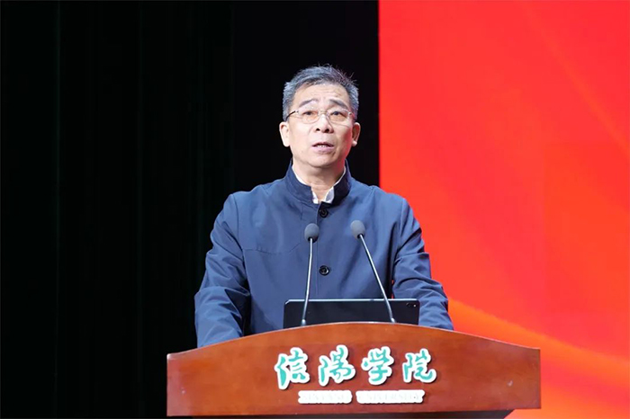 杨进对各位领导、专家、老师的到来表示诚挚的欢迎,对大家长期以来对信阳市的关心和支持表示衷心的感谢。他简要介绍了信阳市的基本情况并指出,信阳市深入学习贯彻习近平总书记关于“讲好党的故事、革命的故事、根据地的故事、英雄和烈士的故事,加强革命传统教育、爱国主义教育、青少年思想道德教育”等重要要求,立足革命老区丰富的红色资源,在全市大中小学深入开展思政课教学技能“大练兵、大比武、大展示、大提升”活动,创新实施实践教育基地建设教学,有机融合思政小课堂和社会大课堂,积极推进大中小学思政课一体化建设。信阳学院是我省第一所扎根豫南革命老区的民办本科高校。自创办以来,在省委教育工委、省教育厅的坚强领导和关心支持下,信阳学院积极践行“为党育人、为国育才”使命担当,聚焦创建全国一流民办高校目标,坚持“扎根革命老区、传承红色基因、服务区域发展”的办学特色,全力抓好人才培养、科学研究、社会服务、文化传承创新等各项工作,累计培育近6万名优秀学子,其中1/3在大别山革命老区就业创业,为加快大别山革命老区振兴发展、助力中原更加出彩作出了积极贡献。特别是信阳学院植根红色沃土,挖掘红色资源,形成了“三课堂”立体联动式的特色思政课改革创新模式,为新时代思政课建设作出了有益探索。