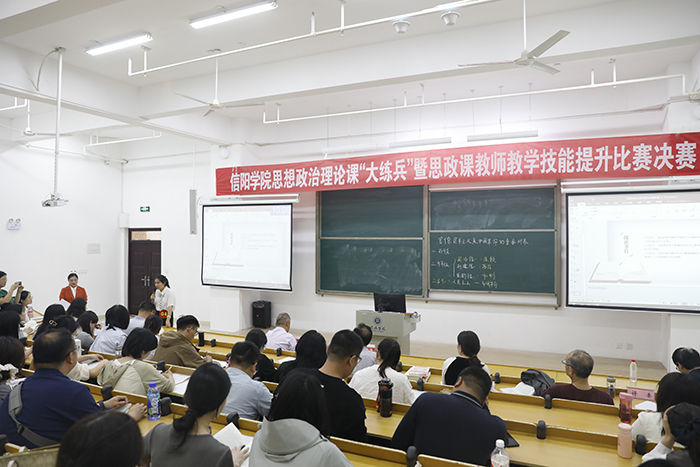 为深入贯彻落实习近平总书记在学校思想政治理论课教师座谈会上的重要讲话精神和“大思政课”重要指示精神,根据中共河南省委宣传部、中共河南省委教育工委、河南省教育厅关于开展2024年度全省学校思想政治理论课教学技能“大练兵、大比武、大展示”活动的工作安排,5月7日,信阳学院思想政治理论课“大练兵”暨思政课教师教学技能提升比赛决赛在综合楼203教室举行。校党委书记褚金海、副校长王强出席大赛。教师教学发展中心主任孟宪乐,教务处长徐久成,党委宣传部长李肖利,马克思主义学院名誉院长,执行院长朱新荣,中国近现代史纲要教研室主任张俊忠,马克思主义基本原理教研室主任黄成勇,思想道德与法治教研室主任张玉柯应邀担任本次大赛评委。全体思政课教师观摩学习。马克思主义学院教学干事李红梅主持了大赛。