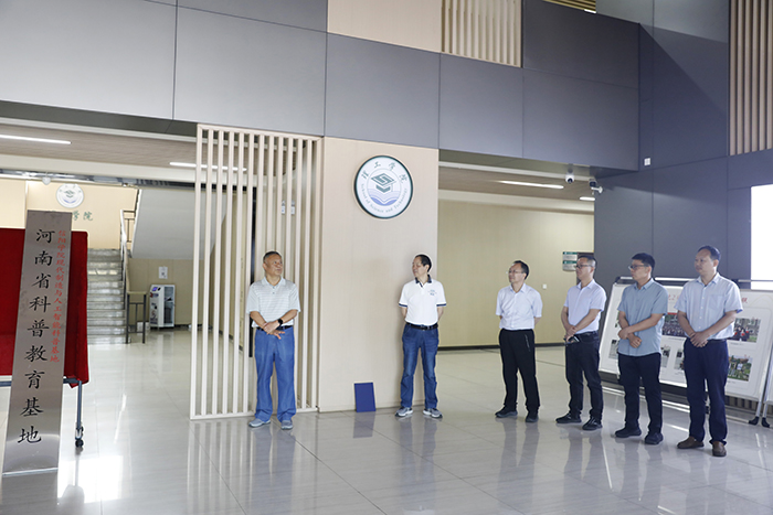 5月16日上午,河南省科普教育基地揭牌仪式在理工楼一楼举行。副校长王强出席仪式。教务处处长徐久成,理工学院院长肖生发、党总支书记张红梅、教学副院长李晓严,大数据与人工智能学院党总支书记郭二军、实验中心主任倪天伟以及理工学院部分教师代表参加了揭牌仪式。李晓严主持了本次活动。