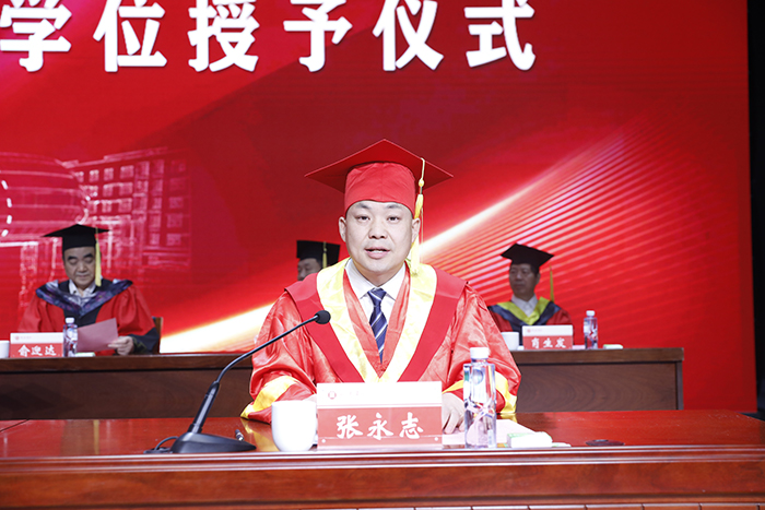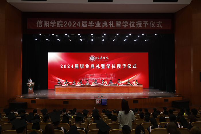 王强宣读《信阳学院关于授予2024届本科毕业生学士学位的决定》,授予符合条件的5526名2024届本科毕业生学士学位。