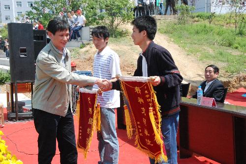 闭幕式上,学院办公室主任张柏平宣读了竞赛成绩。理工系、数学与计算机科学系、艺术与体育系荣获团体总分前三名;外语系、理工系、中文系荣获广播操表演赛前三名。学工部副部长、团委书记李明宣读了本届运动会精神文明单位、优秀组织奖、优秀啦啦队和优秀运动员、优秀裁判员名单。数学与计算机科学系荣获精神文明单位,理工系荣获优秀组织奖,外语系、艺术与体育系荣获优秀啦啦队;巩玉洁等30名学生荣获“优秀运动员”,王瑞杰等30名学生荣获“优秀裁判员”。在欢快的乐曲声中,院领导为获奖单位和个人颁了奖。