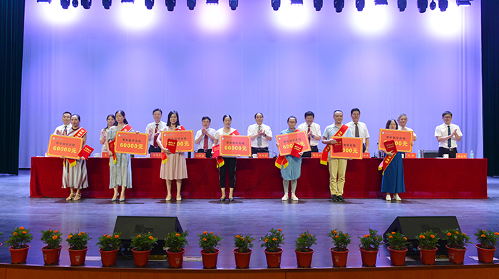 傅洪涛宣读了《关于表彰2018-2019学年目标管理考核优秀单位的决定》《关于表彰2019年生源优势专业的决定》《关于表彰2018-2019学年度优秀教师的决定》《关于表彰第一届“青年教学名师”的决定》《关于表彰奖励2018年度科研成果的决定》等文件。其中,文学院、商学院、教育学院、社会科学学院、数学与信息学院为2018~2019学年目标管理考核优秀单位;教育学类、法学、英语、汉语言文学、音乐学、美术学、会计学、生物科学为生源优势专业;梁法丽、李晓娜荣获“2018年河南省优秀教师”,高永平、杨辉荣获“2018年度河南省文明教师”,杨立昊荣获“2019年度河南省文明教师”,任士伟荣获“2018年度河南省教育系统先进工作者”,李肖利、贾彦茹荣获“2018年度河南省民办教育先进个人”,张孟杰等16位同志荣获“2018~2019学年度优秀教师”;李静等7名同志为信阳学院第一届“青年教学名师”。同时,一批科研成果获得了学校的奖励。