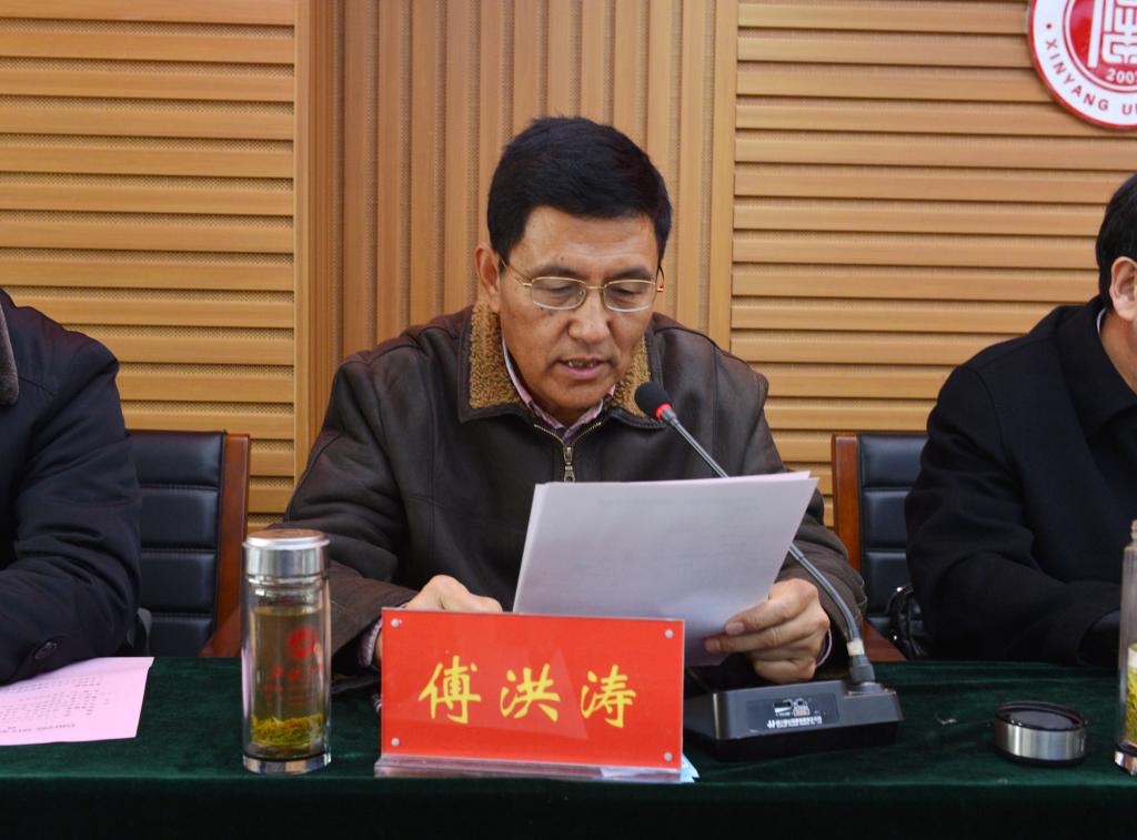 傅洪涛宣读了信阳学院理事会文件《关于吴柏林同志任职的决定》,并对学校师资队伍的结构、规模及面临的建设任务作了简要说明。
