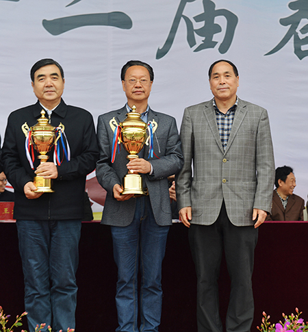 在激昂欢快的乐曲声中,王北生为荣获团体总分前三名单位颁奖,党委书记为荣获优秀组织奖单位颁奖,施昌海为荣获精神文明奖单位颁奖,杨高伟、张永志为荣获啦啦操比赛前三名单位颁奖。