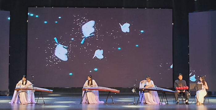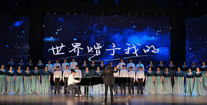 晚会以治愈系混声合唱《世界赠予我的》温暖启幕,用歌声传递对生活的感恩。原创歌曲《我把心愿写成歌》用校园记忆串联起青春笑泪,《石榴花开》则以铃鼓伴舞展现民族团结的蓬勃生机。流行串烧《我的未来式》《爱你没差》《直到世界尽头》三曲联唱,用“由我做主”的宣言和“不散场”的约定诠释青春誓言。《渔歌子》以清丽歌声勾勒江南水墨,《努玛阿美》用钢琴演绎哈尼梯田的文明密码,《蝴蝶泉边》则以古筝模拟泉鸣蝶舞。舞蹈《醉春风》用足尖描绘春日柔情,《觉醒年代》用铿锵舞步再现青年觉醒的力量。红色经典《八月桂花遍地开》通过情景歌舞重现革命岁月,民歌联唱《茶妹子》《一朵茉莉花》则带观众漫步茶山品诗意。一首《纪念》细数教室晚霞与操场奔跑的身影。《思源》以深情旋律感恩母校栽培。晚会在充满活力的舞蹈《风起时,正青春》《再一次出发》中落下帷幕,为这场融合传统与现代、青春与传承的艺术盛宴画上圆满句点。整场晚会高潮不断、掌声热烈、情绪高涨,倾注了音乐学院师生爱党爱国爱校的深厚情怀,展示了师生雄厚的专业功底,受到学校领导和广大观众的充分肯定和热情点赞。