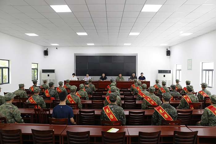9月15日上午,我校2025年秋季大学生应征入伍欢送会在浉河区武装部新兵集训基地综合会议室举行。副校长王志华、浉河区武装部上校部长王建立出席欢送仪式,学工部、人民武装部负责同志,部分学院负责同志以及我校2025年秋季入伍学生共同参加了此次活动。余婷婷主持了会议。