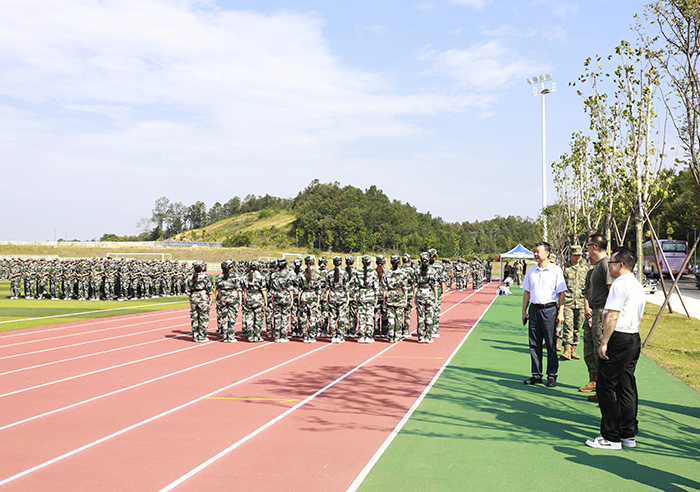 9月16日上午,我校校领导,承训部队首长,在校办、学工部、人武部等部门负责同志陪同下,深入军训现场,看望正在进行军事训练的2025级大一新生和承训教官。