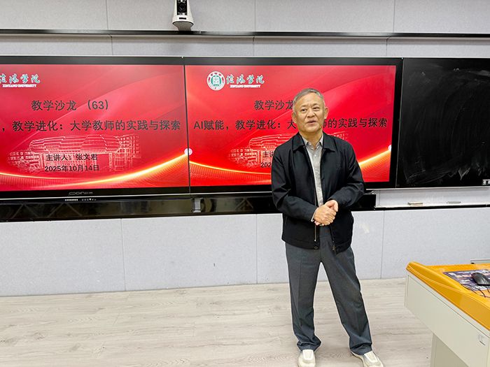 10月14日下午,由教师教学发展中心主办、理工学院承办的主题为“AI赋能,教学进化:大学教师的实践与探索”的教学沙龙在人文南楼智慧教室113举办。本次活动由理工学院张文君老师担任主讲嘉宾。副校长王强出席活动。教师教学发展中心主任孟宪乐,理工学院院长肖生发、教学副院长李晓严、理工学院全体教师及部分其他院部青年教师参加了此次活动。孟宪乐主持了教学沙龙。
