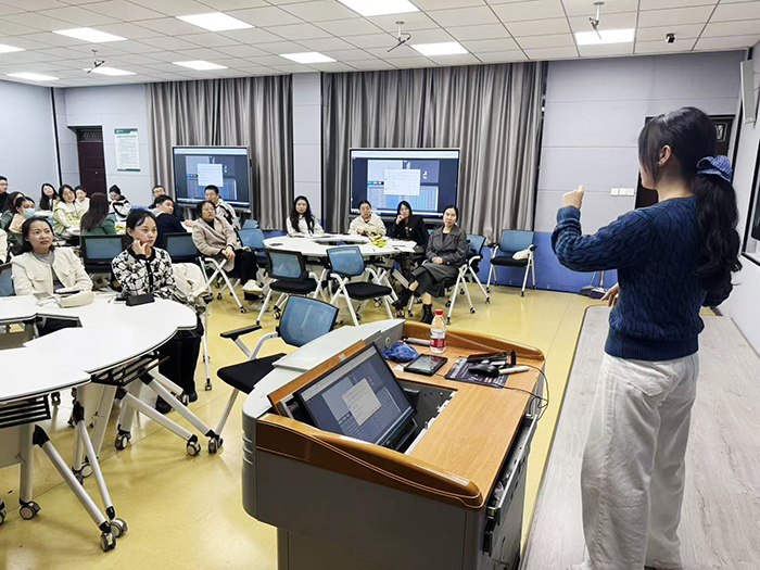 教学沙龙活动环节,张文君老师以“AI赋能,教学进化:大学教师的实践与探索”为主题,先从政策导向、教学痛点及时代趋势阐明关注AI的必要性,明确AI作为“认知伙伴与赋能工具”的定位;随后详解了AI在教学全流程的应用:课堂教学环节,设计 AI 驱动的互动活动并坚守“45分钟教师主场”原则;课后阶段构建 AI 个性化辅导、知识图谱、人机协同批改体系及学情数据分析机制。与会教师表示分享兼具理论高度与实操性,破解教学难题,为教学及教师发展指明了方向。