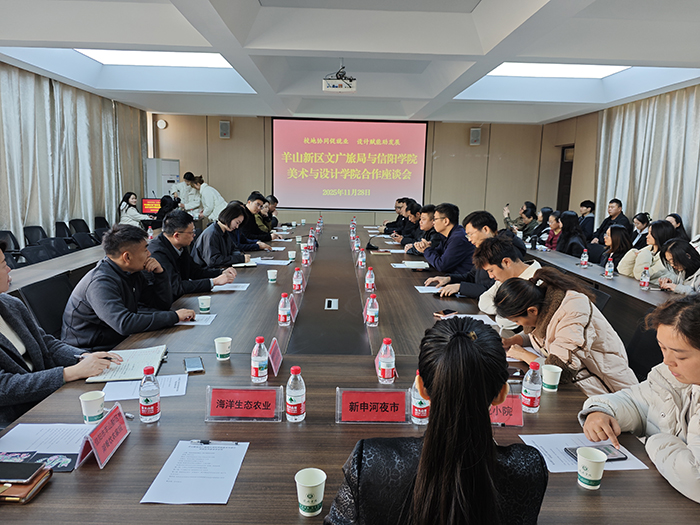 为深化校地合作,促进产教融合,拓宽毕业生就业渠道,11月28日下午,羊山新区文广旅局带领多家企业赴我校美术与设计学院开展合作洽谈,座谈会于学院艺术楼215会议室召开。美术与设计学院领导班子、各专业教师代表参加座谈会,教学副院长王伟主持座谈会。会议以“校地协同促就业,设计赋能助发展”为主题,聚焦拓展学生就业渠道、增强服务地方经济社会发展的能力进行了深入探讨。