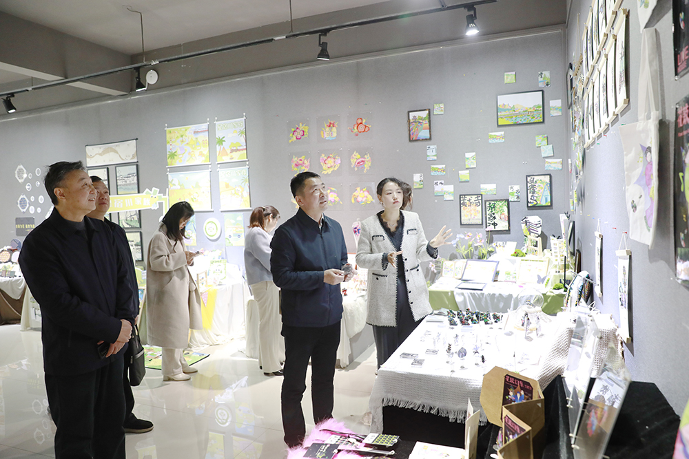 座谈前,涂健歌一行深入美术与设计学院展厅,观看了学生作品展,听取了作品创作理念,对学生扎实的专业功底和新颖的创意表现给予了高度评价。