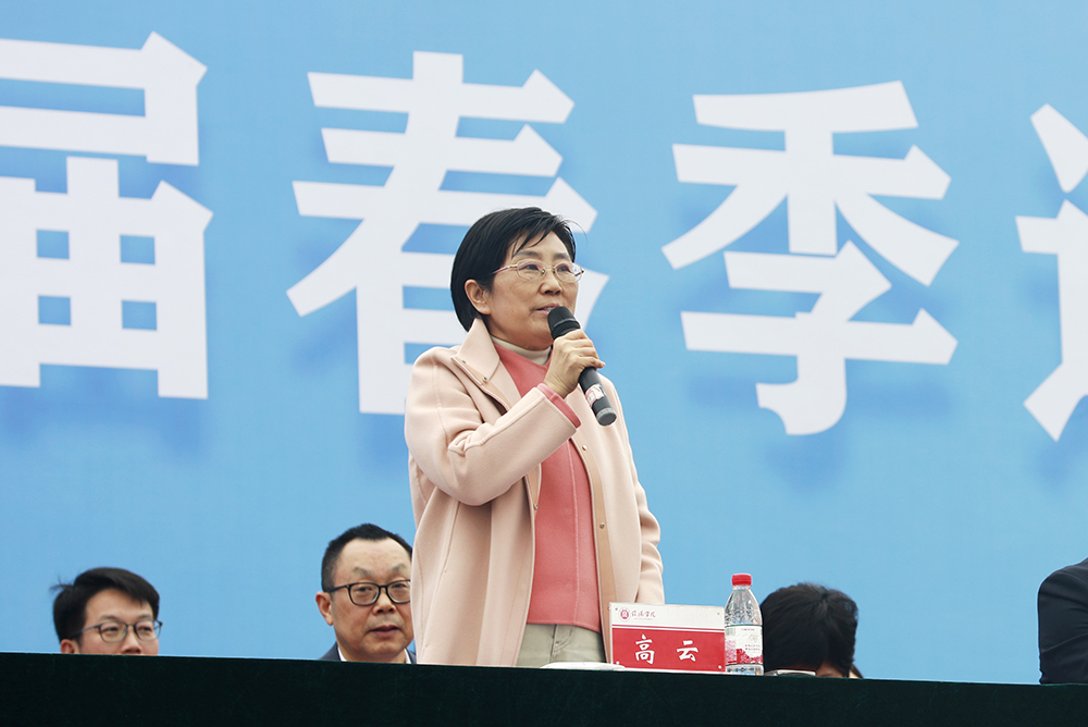 理事长高云宣布信阳学院第十六届春季运动会开幕,并为运动会鸣第一枪,标志着运动会正式拉开激烈角逐的序幕。