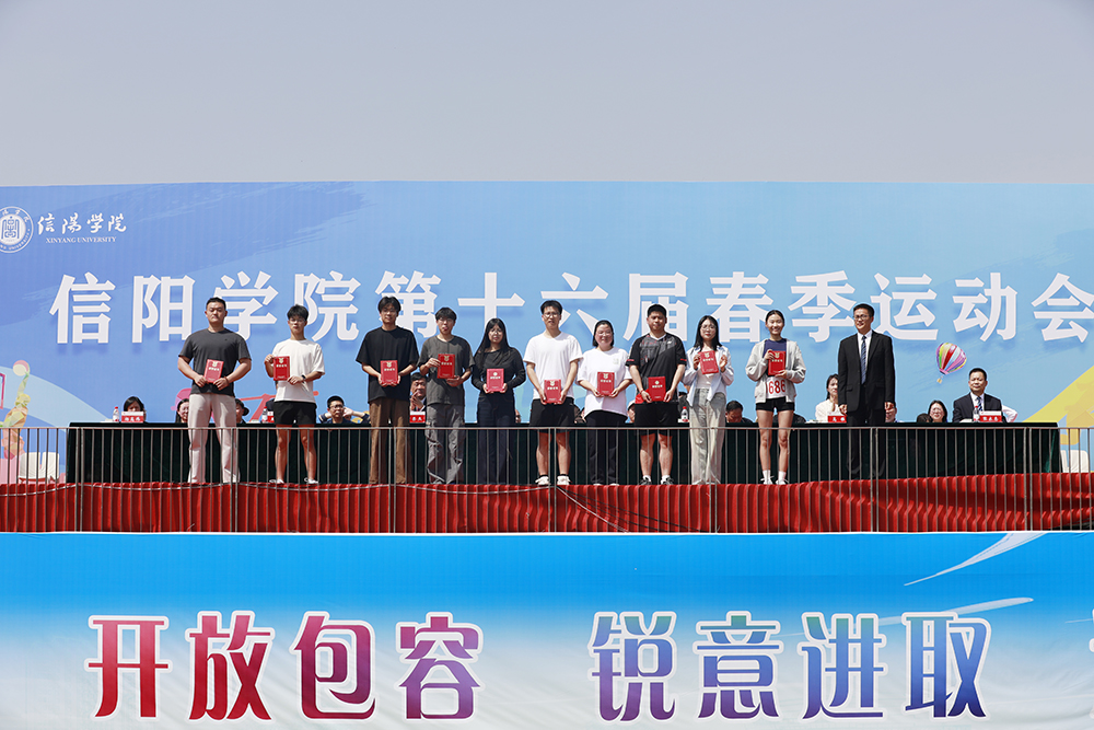 副校长王志华致闭幕词,向在本届运动会中取得优异成绩的运动员、教练员及各代表队表示热烈祝贺,向恪尽职守的全体裁判员和辛勤付出的工作人员致以衷心感谢。他表示,本届运动会秩序井然,紧凑激烈,精彩纷呈。全体运动员顽强拼搏、奋勇争先,在100米、200米等项目中刷新多项校运会纪录。本届运动会不仅全面检阅了我校体育工作的水平和实力,更生动展示了优良校风校貌和信院人开拓进取的青春风采,获得了体育竞技和精神文明双丰收。王志华指出,体育既是强健体魄的重要基石,更是锤炼意志品质、凝聚奋进力量、砥砺精神品格的关键载体。我们要深入学习贯彻习近平总书记关于体育的重要论述,践行“健康第一”的教育理念,把体育健身同立德树人深度融合,推动学校群众性体育运动常态化、长效化开展,让“天天锻炼、健康成长、终身受益”成为校园新风尚。希望全体师生以本届运动会为新起点,把赛场上展现出的顽强拼搏、团结协作、奋勇争先精神,转化为投身教育教学改革、学科专业建设与人才培养创新的不竭动力,以实干担当、善作善成的奋进姿态,推动学校高质量发展。