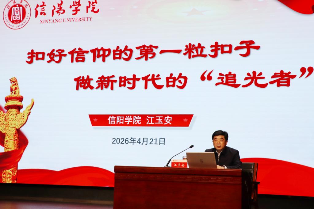 开班仪式结束后,江玉安以《扣好信仰的第一粒扣子 做新时代的“追光者”》为题,围绕“对对齐”“升升级”“打打怪”三个关键词,系统讲解了党的性质、指导思想、奋斗目标等基础知识。结合青年思想实际,深入剖析并纠正了功利化、盲目从众等不良倾向,引导学员坚定理想信念、端正价值追求、把稳人生方向。他强调青年学生要善于运用矛盾规律、质量互变规律等唯物辩证法原理指导学习实践,并结合优秀校友的先进事迹,激励学员见贤思齐、汲取奋进力量。他谆谆告诫全体学员,要自觉摒弃精致利己主义,克服消极懈怠心态,严守纪律规矩底线,坚持将小我融入大我,主动把个人理想追求融入强国建设、民族复兴的时代大局。