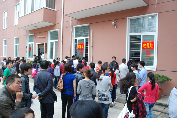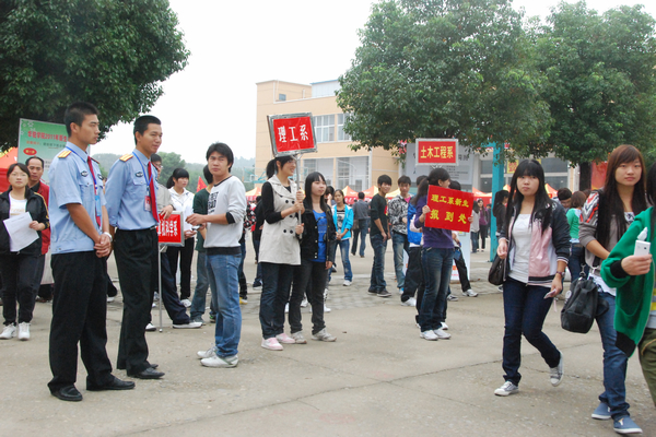 校园里彩旗飘扬,条幅高悬,现场一片忙碌的景象,处处显现出亲切、热烈、喜庆的气氛。校门内外川流不息,满载新生的迎新车一辆接一辆,新生及迎新人员的人流汇成了人的海洋。学生一餐厅西操场前,各系一字排开,迎新车一到,负责迎接新生的高年级同学立即迎上前去,帮助新生和家长提行李,带领新生报到、缴费等,并耐心解答家长的问题。他们的热情接待和周到服务得到了新生及家长的一致称赞。