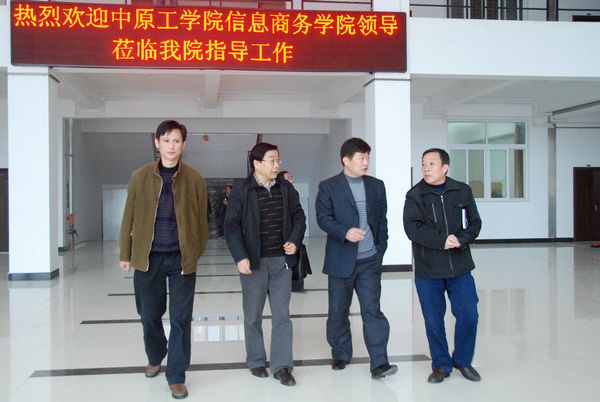 11月17日,中原工学院副院长、信息商务学院院长、书记黄乾,信息商务学院副院长刘登义,组织人事处处长杨子卿,办公室主任杨保国,教务科技处处长赵志泉,学生工作处处长于永民,后勤保障处处长王孟强,督导室主任范文捷,教务科技处副处长卜伟刚一行九人来我院考察交流工作。信阳师范学院副院长、我院副董事长李俊,我院院长郑定豪,党委书记祝军,副院长王志华、王忠阁、高云等出席座谈,陪同参观校园。双方就学士学位授予单位评审、迎接教育部考察验收等事项进行了深入交流。