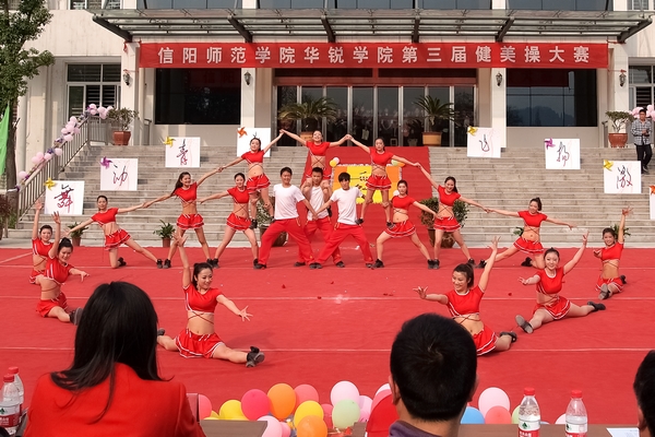 3月28日下午,我院第三届健美操大赛在理工楼前举行,本届大赛的主题为“舞动青春、飞扬激情”。董事长高峰,院长郑定豪,党委书记祝军,常务副院长高云,副院长王志华,各单位负责同志和2000余名师生共同观看了本次大赛。
