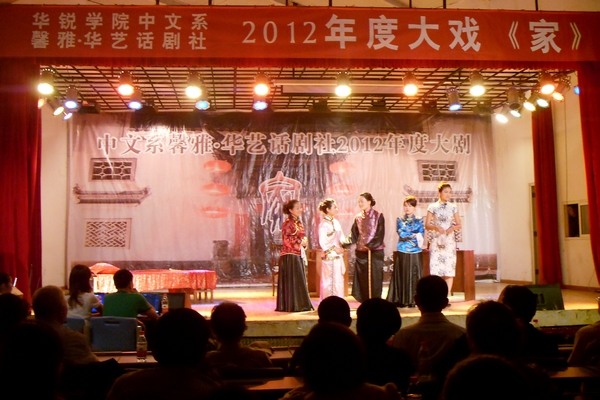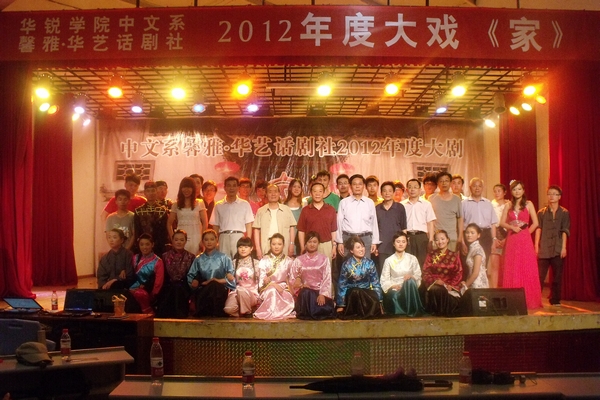 5月22日晚,中文系2012年度大剧《家》在大学生活动中心盛大开演。院长郑定豪,教学部部长董迨传,督导督察室主任李增基,中文系主任傅瑛,理工系主任钟迪生,外语系主任罗德喜,人事部部长、招生就业部副部长杨高伟,学工部部长助理、团委副书记张富庄与700余名师生共同观看了演出。