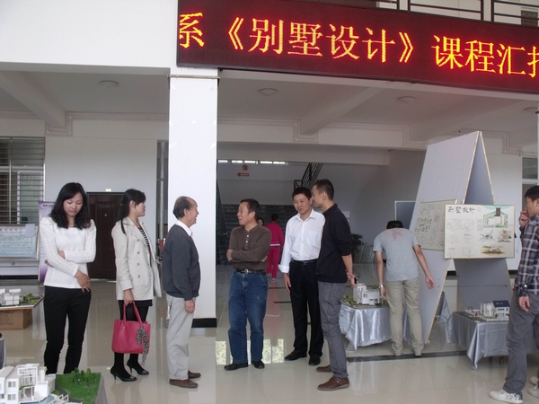 艺术系历来重视学生教学实践,本次别墅设计作品展结合设计专业《别墅设计》课程改变以往传统的授课模式,改变了一切均停留在方案阶段的结课形式,采取了“设计——实践——设计”的方式。让学生将自己的设计方案转变为实践作品,在实践中探索别墅的形式美、结构美以及空间的合理性,然后再回到方案中验证、修改自己的作品,以此达到方案与实践的完美结合,弥补以往教学形式下二者的断层。 《别墅设计》在课程作业的设置上使用考研快题,并把考研题的要求贯彻其中。从建筑总平面图——建筑平面图——建筑立面图——室内效果图——到整个版面的设计都严格按照考研命题的标准进行,为日后学生考研打下了基础。