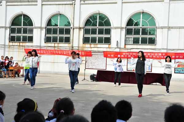 4月13日,我院学生志愿者参加了“马华千里单骑中国公益行信阳站活动”。本次活动由信阳市志愿者协会组织,活动地点在信阳市特殊教育学校,团市委书记赵君峰,团市委副书记孙晓莉参加了本次活动。