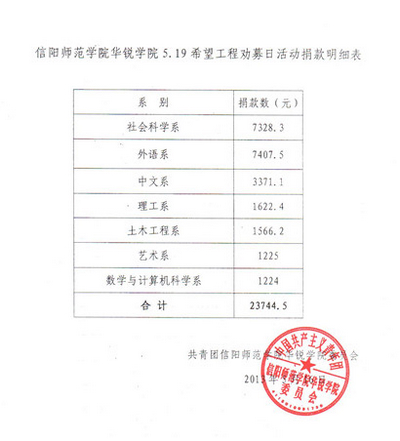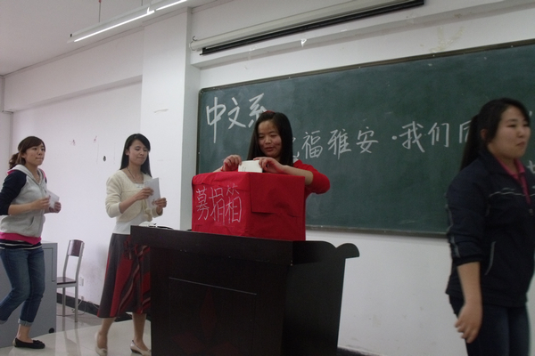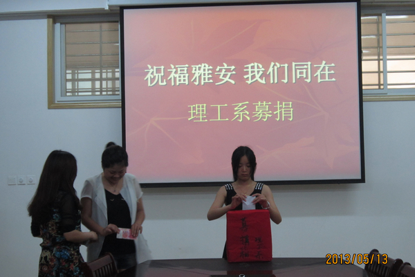 我院开展了“祝福雅安 我们同在”5.19希望工程捐助活动。广大师生踊跃参与,截止目前,共筹善款23744.5元,以实际行动帮助因在雅安地震中受灾而失学的贫困学子。