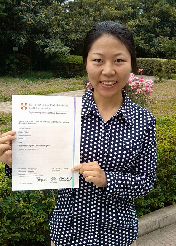 日前,外语系2009级英语本科6班周佩佩同学参加剑桥商务英语资格考试并取得BEC高级C1资格,这是我院近年来唯一一个考取高级资格的学生。