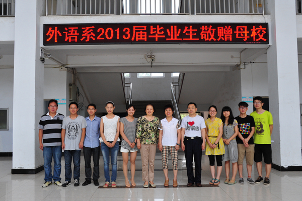6月7日上午,外语系2013届毕业生向母校赠送礼品。院党委书记张莉,常务副院长高云与该系毕业生代表合影留念。毕业生们表示将永远铭记老师们的谆谆教诲,立志当有为青年,为社会贡献力量。